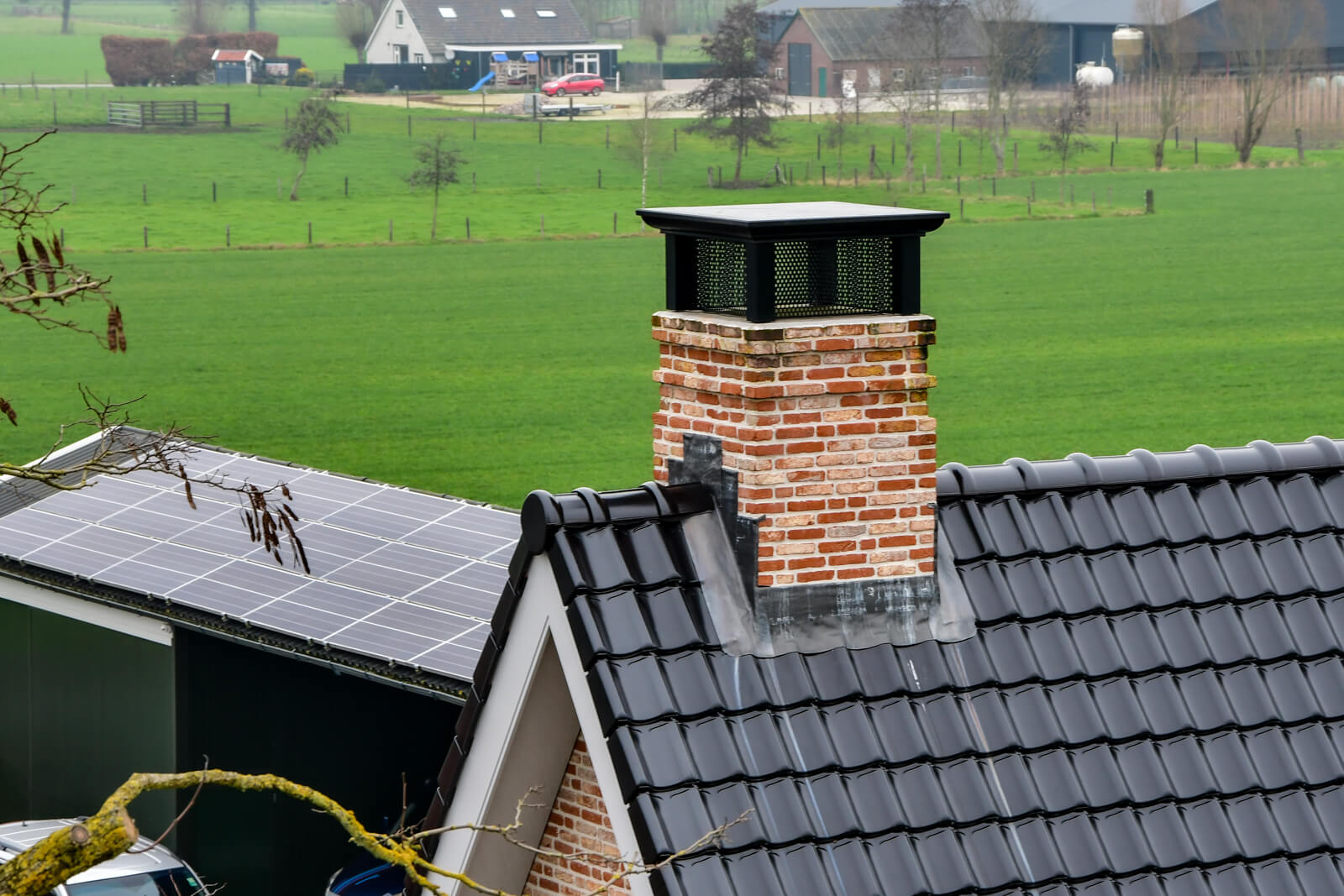 In opdracht van Bouwbedrijf C. Leeuwis hebben we de schoorsteen van deze woning in Barneveld voorzien van een rvs overzet schoorsteen. De schoorsteen heeft een poedercoating in de kleur 9010 gekregen voor een strakke afwerking. De schoorsteenkap is op maat gemaakt van rvs en voorzien van vonkengaas. De waterkering is uitgevoerd met een loodvervanger. Het geheel is hiermee een strakke, maar ook duurzaam geheel geworden.